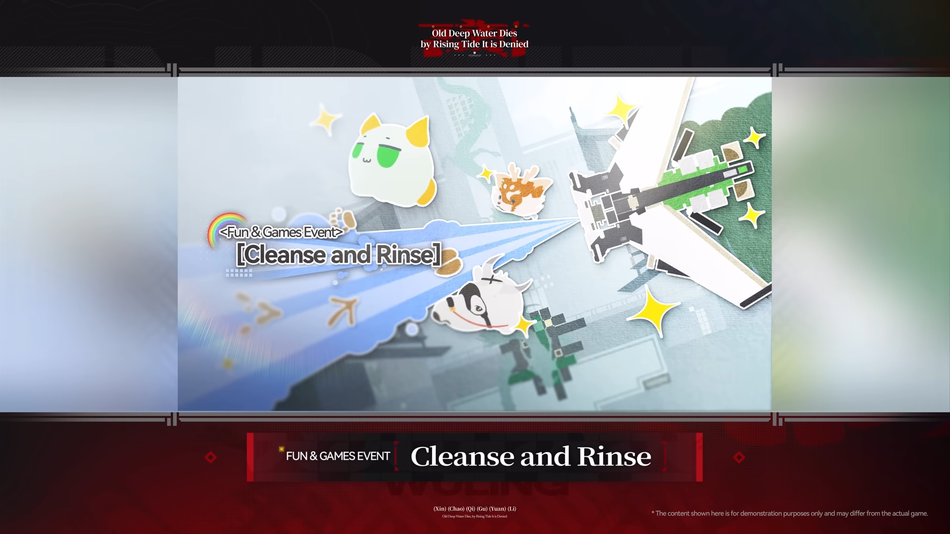 Cleanse and Rinse is a new type of "Fun & Games" Event premiering in Version 1.1. In this event, you'll be tasked with playing a little Power-Wash Simulator to clean up some messes throughout Wuling, helping poor Auntie Yu of the Urban Sanitation Workers.
