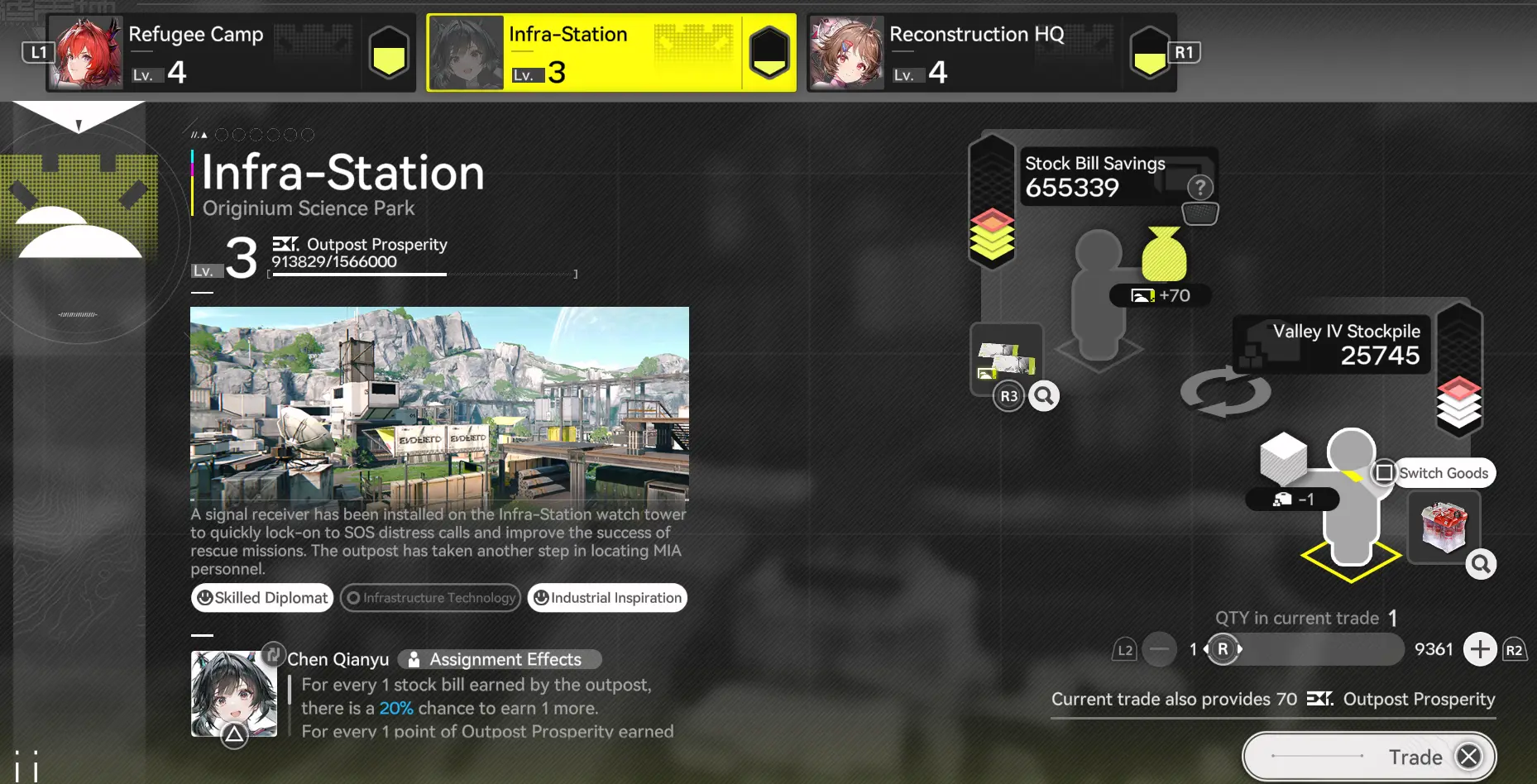 Unlocking and leveling all Outposts early has a much bigger impact than it first appears. It frees up valuable space in your main PAC, stabilizes your Stock Bill income, and speeds up Regional Development. Once you reach Wuling, you will need your Regional Development to be at least level 11 if you want to have access to the proper material exchange functions between regions.