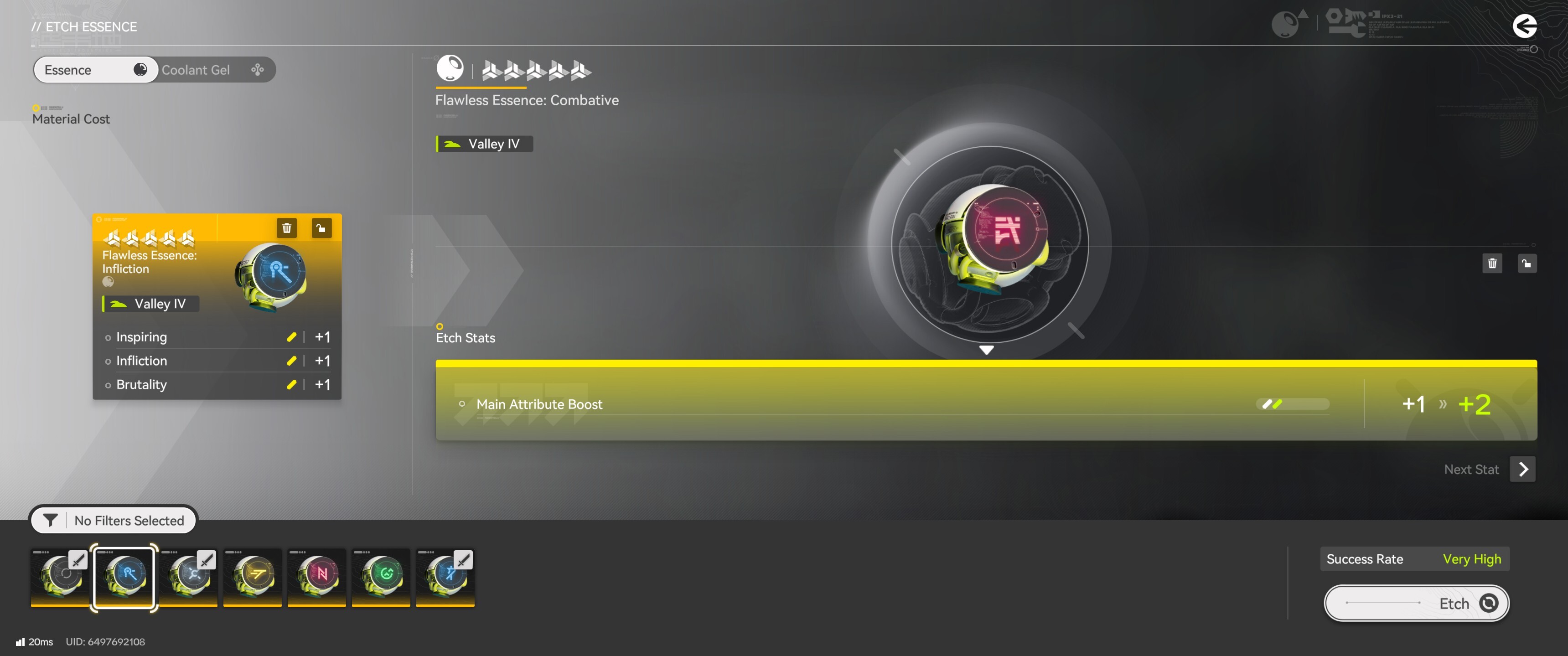 The essence system also has a stat-boosting feature called Etching. This allows you to increase the level of an essence's stat. Etching is only available for gold-rarity Essences, as both the Essence you want to enhance, and the Essences needed to "feed" into your chosen Essence have to be of gold rarity.