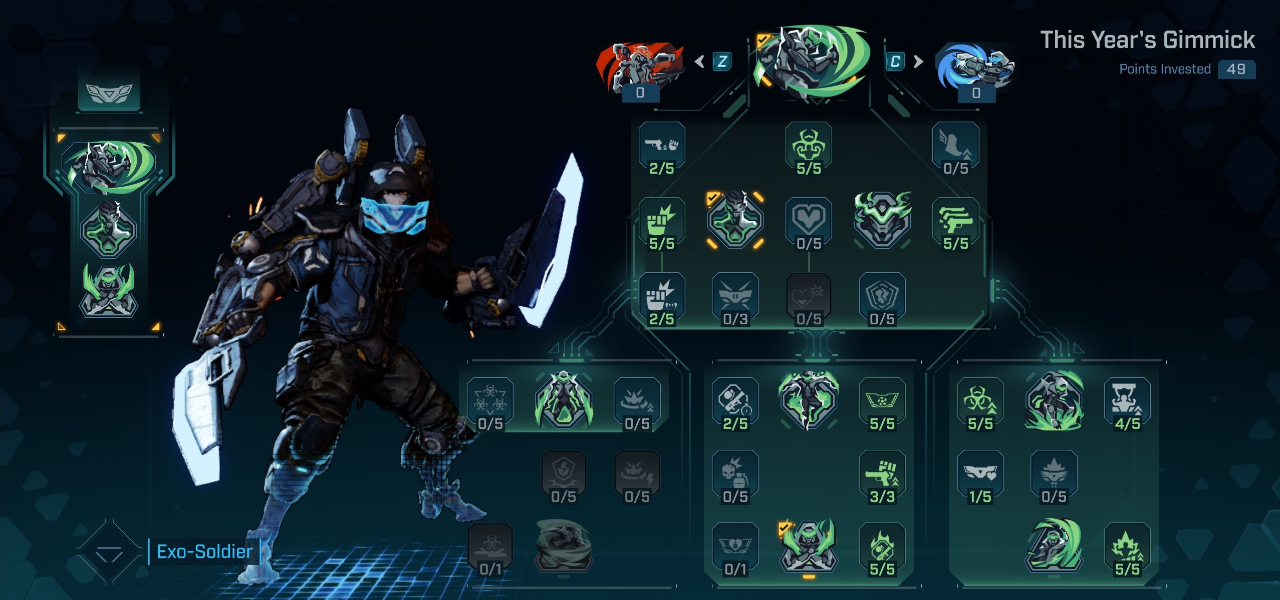 This Arc-Knives build focuses entirely on the This Year’s Gimmick skill tree, fully committing all 49 points into it. Alongside the Arc-Knives Action Skill, Altered Cabrón is the Augment of choice due to its passive boost to Corrosive damage to support the build. The Inferno Protocol Capstone is used to provide the build with a consistent source of Incendiary Damage, which will be incredibly useful for synergies that we’ll detail in the Skill Breakdown of the guide.