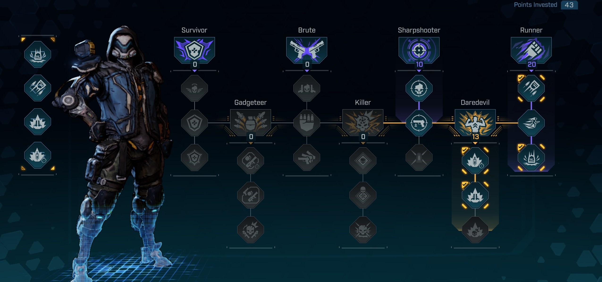 By default, Arc-Knives gets nearly all of its damage scaling from Melee damage. However, through the use of key specialization passives this can be greatly diversified to scale off of Bonus Gun Damage and Non-Melee Attack Damage. Due to the sheer strength of these passives, investing into the Runner and Daredevil trees is almost mandatory to be successful with the build.