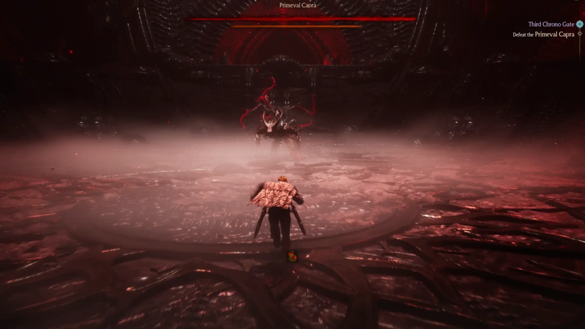 As you enter the third Chrono Gate, you'll find yourself in an arena with Primeval Capra, where you can begin to dish off as much damage as possible. After dealing some damage, you'll see Primeval Capra unleash a large screech, where he will then summon a large number of smaller mobs within the arena, which will start charging towards you.