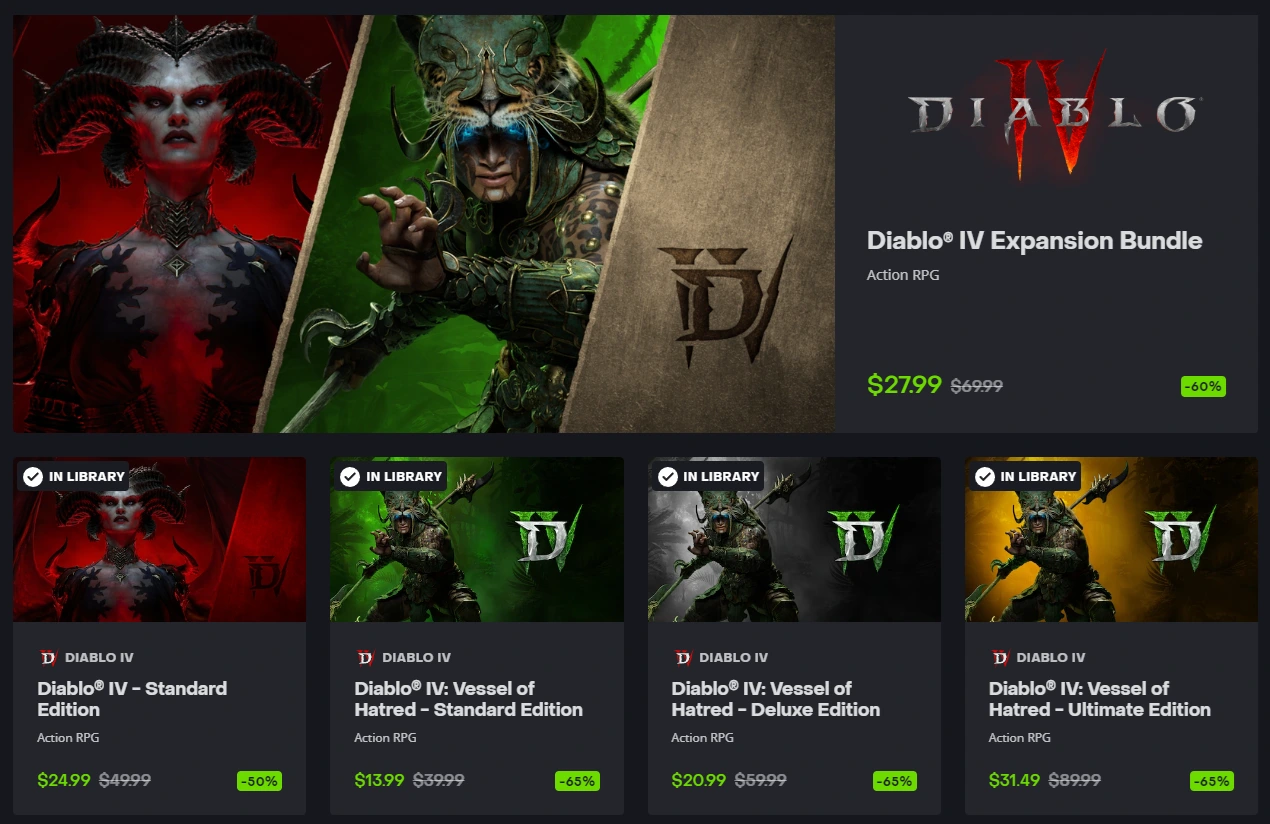 - Diablo IV: Vessel of Hatred – Deluxe Edition — up to 65% off