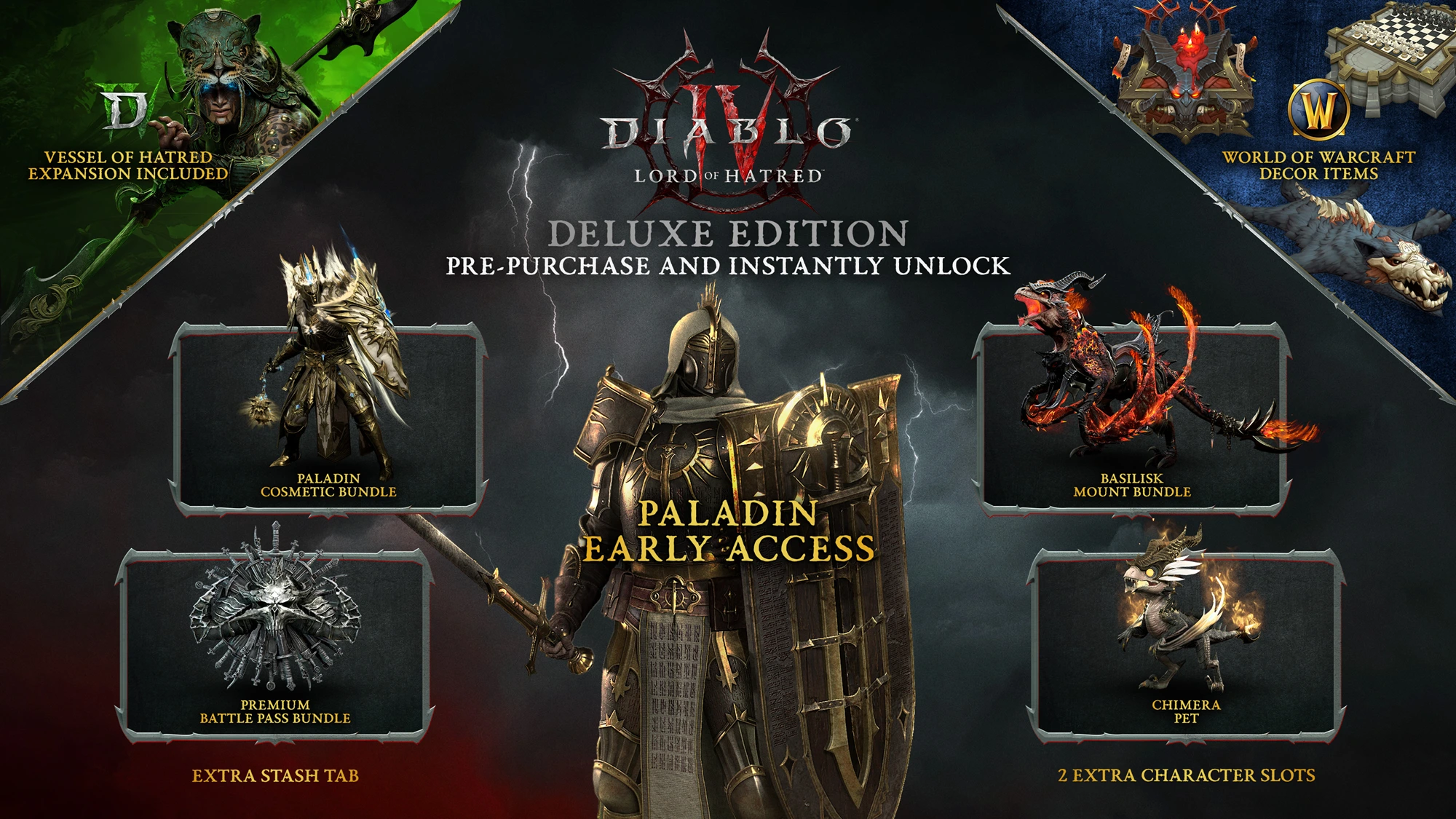 That’s right, if you preorder Diablo 4’s next expansion, Lord of Hatred, it allows you to play the new Paladin class early, right now! But if you want to upgrade, you can get a lot of extra cosmetics.