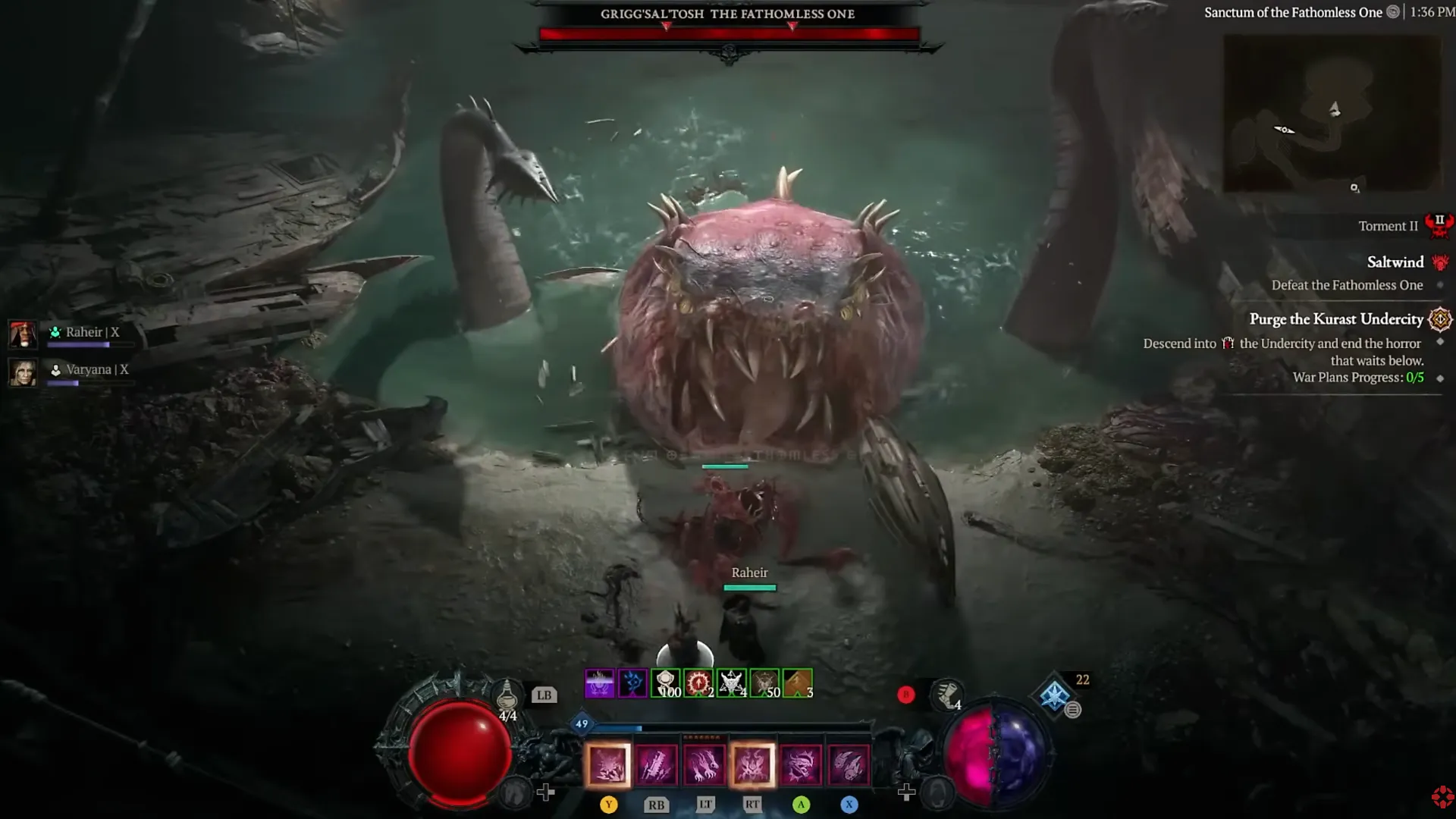 The video is played using the new Warlock class, which gives us yet another look at the new class and its abilities in action. One of the highlights is the Saltwind Stronghold, where the player fights off waves of enemies before taking on a boss called The Fathomless One, with tentacles erupting from the ground during the encounter.