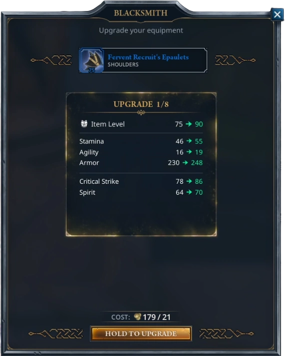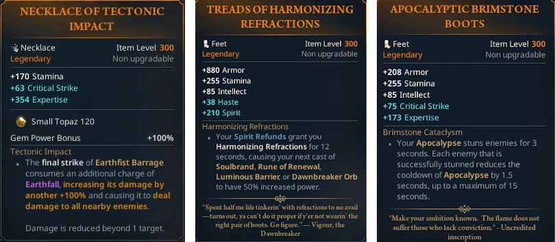 • Epic: Dropped from Adept’s Capstone dungeon and Champion difficulty dungeons. Item level caps at 240.