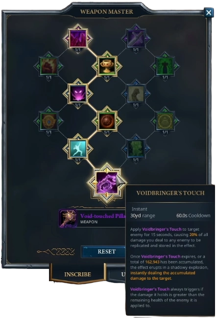 Here you can choose your weapon talents for any Epic or higher weapon. Like talents, respeccing is free.