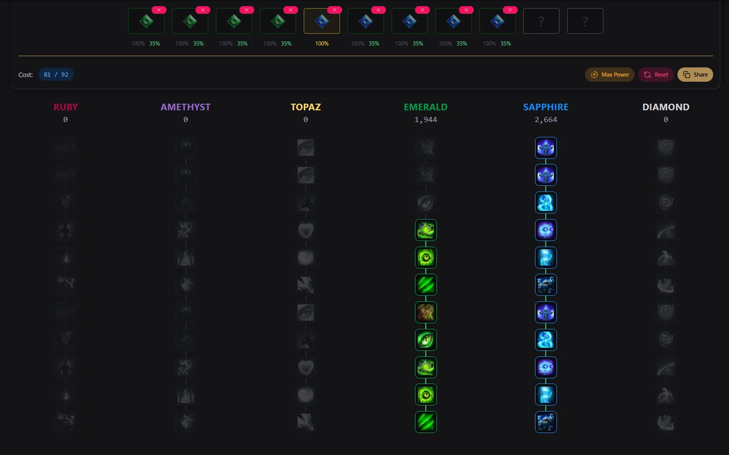 As you start stacking more gems and materials for fusion and re-rolling, you can start building towards best in slot. Assuming full 35% essence sockets + 100% essence from the legendary, you will be able to use either: