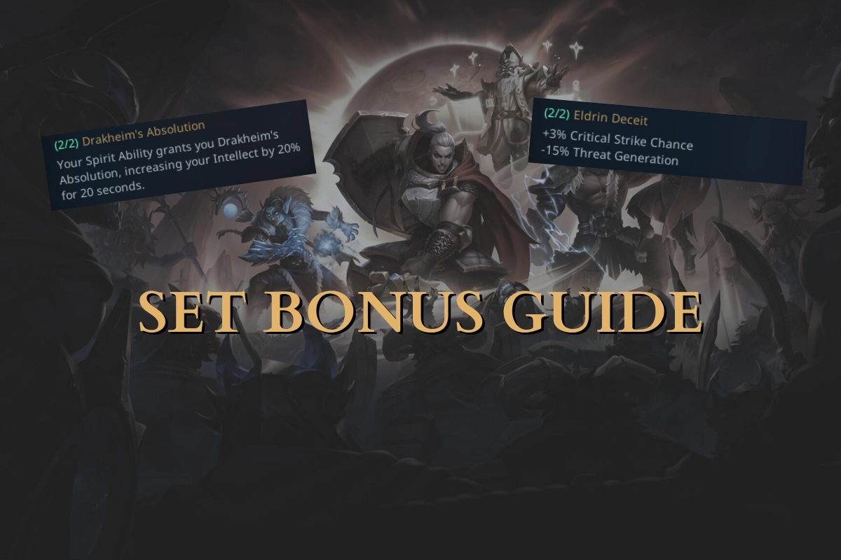 Item set bonuses are pieces of gear that can drop on completion of any dungeon played in the Challenge or Eternal game modes. These gear pieces have an additional effect once you meet the requirement to activate the bonus. Each item set requires 2 pieces from the set to activate the set bonus.