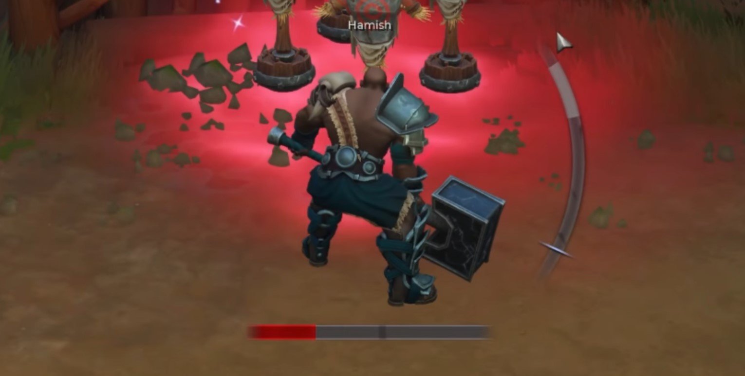 Tariq’s Swing Timer is represented by the white bar to the right of Tariq. It has a thicker section near the top and a white line, representing the countdown, that runs perpendicular to the bar. The thicker section of the bar will turn from grey to red when the white line gets closer to it. An auto attack will be executed when the white line reaches the end of the red section of the bar. You can enhance your auto attack with your Heavy Strike ability.