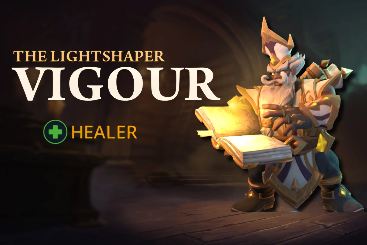 Vigour is an Intelligence-based Healer that has direct, burstable healing and shields. Over time in fights, you’ll generate Radiant Runes that gives you access to extra damage and healing spells.