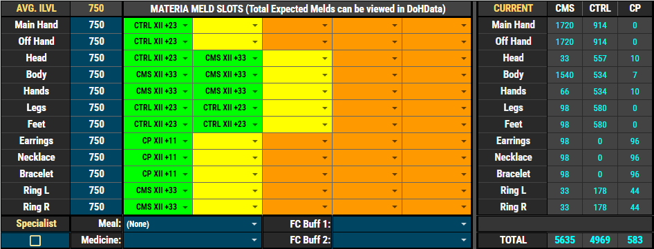 This is our Mid Tier set for the current endgame meldsets. To ensure this set can remain competitive, CMS and CP hit the same breakpoints as the high tier set. Simply takes a few additional HQ materials but guarantees you will not have crafting issues.
