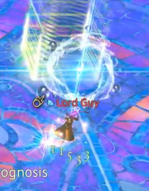 Pari will put debuffs on two of the players. One debuff looks like three people huddled together, and is a stack. The other looks like a circle, and is a large spread AoE. The boss will also summon multiple red Charming Bauble gems, leaving only two tiles safe. The spread player should make sure not to occupy the same tile as the rest of the party, or they will kill everyone.