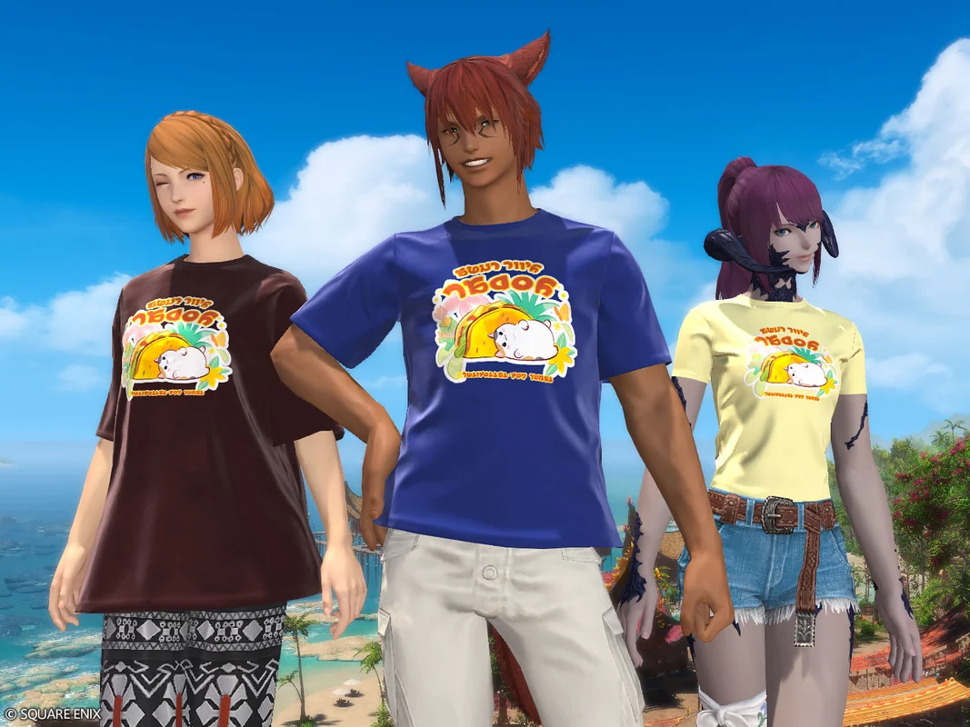 The cutest and most delicious shirts have arrived! The design mixes the adorably rotund Fat Cat and Aunt Tii’s beloved tacos on dye-able shirts. The Aunt Tii’s Neotunic Three-piece Set comes bundled with three different fits at $8.10, or $9.00 post-sale.