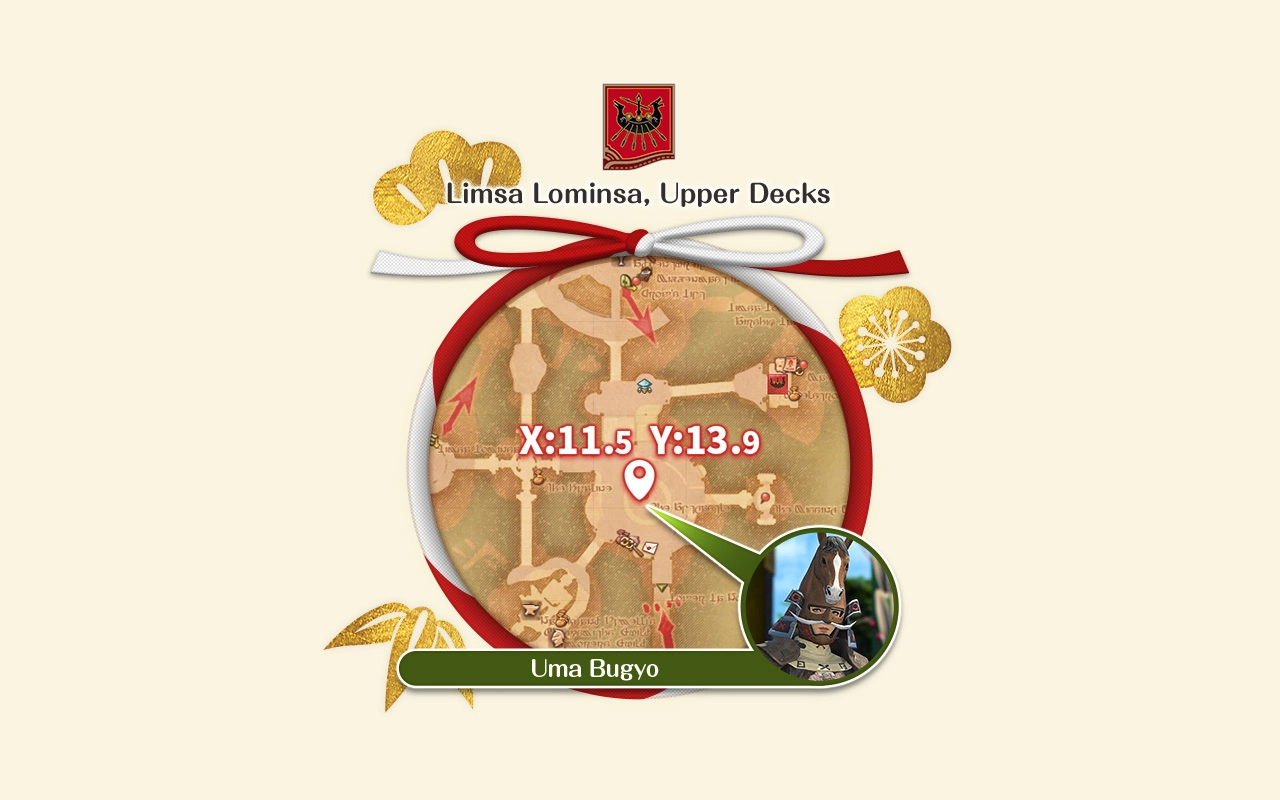 To start this year’s Heavensturn quest, head to the Aftcastle at Limsa Lominsa’s Upper Decks (X: 11.5, Y: 13.9). Talk to Uma Bugyo to accept the quest “Seize the Neigh“, just make sure you are level 15 and have access to La Noscea. This will start a 2-quest chain where you build up the confidence of the littlest unicorn. It’s just like Umamusume if you squint at it funny. 🐎
