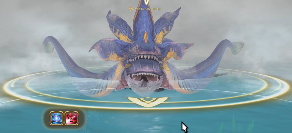 - Tidal Guillotine: at some point in the fight, the boss will become untargetable and a message will appear on the screen "The Dandan moves to attack from beneath the water's surface..." During this time, the boss will move under part of the arena, where it will cast Tidal Guillotine before exploding in a massive point-blank AoE.
