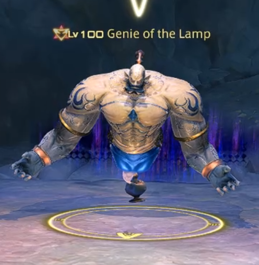 - If you encounter him on the Market route, killing the Blue Bomb enemies inside the cave before his boss room will cause parts of the walls to collapse. This will cause several Dousing Spirits to spawn along two of the walls during the boss battle. Each will do a frontal line AoE. Dodge this by standing in a spot where there is a gap in the lineup on each wall. This will happen twice in a row, and the second time, Genie will cast Lamp Oil, causing some of the safe spots to be covered by AoEs. Find the spot that is safe from both the AoEs and the lines from the Spirits to resolve the mechanic correctly.