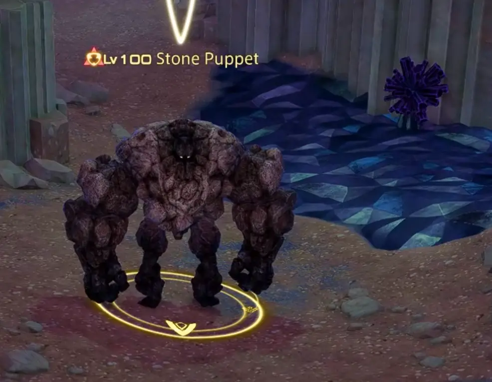 After selecting the Gate option, progress through the dungeon normally until you reach the choice between the mushrooms or the floating rocks. Select the choice "Let the mushrooms guide us true!" You will enter a cave with a single Stone Puppet enemy. Do not kill this enemy right away. Instead, lure it to a cluster of spiked rocks and wait for it to cast Magnetic Rock.