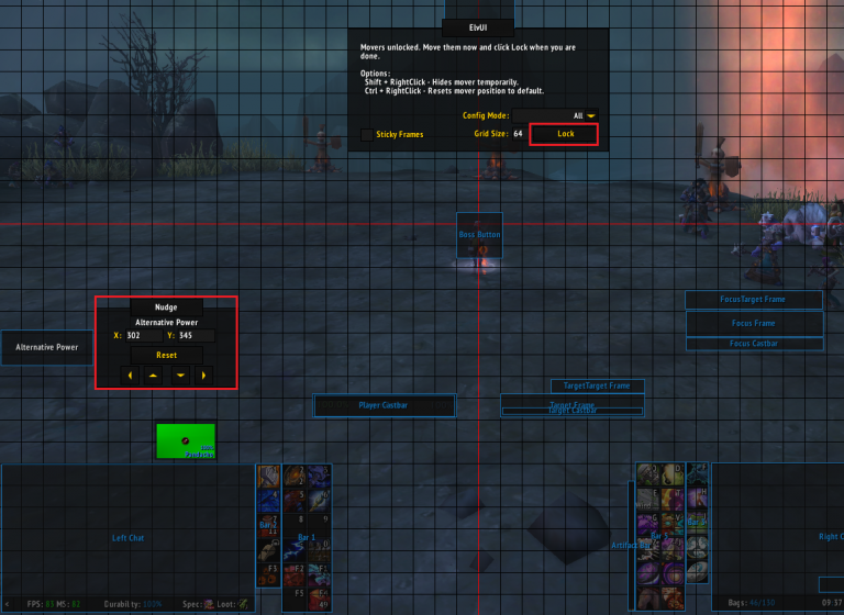 ElvUI is a full UI replacement. It completely replaces the default Blizzard UI at every level with a new and better interface. It has multiple addons and plug-ins integrated into it, such as Dominos action bars and TidyPlates. As such, you’ll only ever have to update ElvUI and not worry too much about its individual components. This UI will arrange your interface to be more flexible and practical.