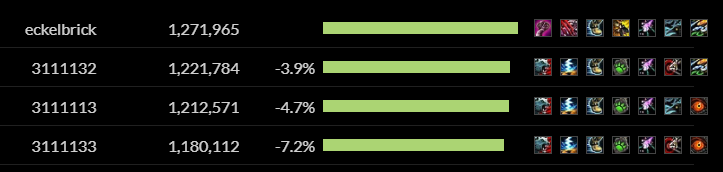 Granted these values fluctuate as I play with gear combos, but these are the stats i have where I am getting the highest parse in sims. This is with having the t20 4 piece and tier 21 2 piece in all sims.