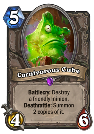 1. Play Seeping oozeling, get Carnivorous Cube deathrattle.