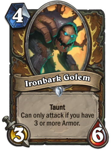 Blizzard eSports Latin America has revealed a new Druid common from Kobolds and Catacombs. Like Druid's Spellstone, Ironbark Golem hints at an Armor theme for Druid in K&C: