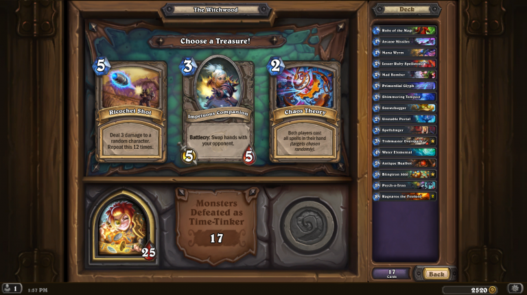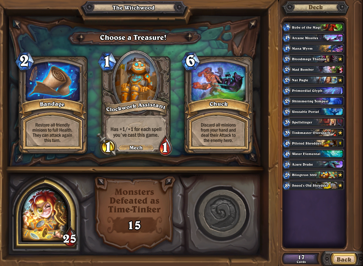I finally won against Infinite Toki. I was lucky and got the Mantle of the Magi Treasure first and then fully commited to the Wild Magic Bucket. My second passive treasure then was Khadgar's Scrying Orb. Having a hand full of 0 cost arcane missles with 6 shots each is a blast.