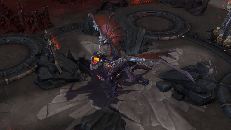 • Dragonflight—Too large for any mount, Deathwing relies on a much more draconic means of traversing the map. A global mobility tool, Dragonflight will take him to the clouds, where he becomes Invulnerable while both healing and gaining back any missing Armor Plates. As soon as he is healthy enough, he can choose whether to come crashing back down to the battlefield in either Destroyer or Worldbreaker forms.