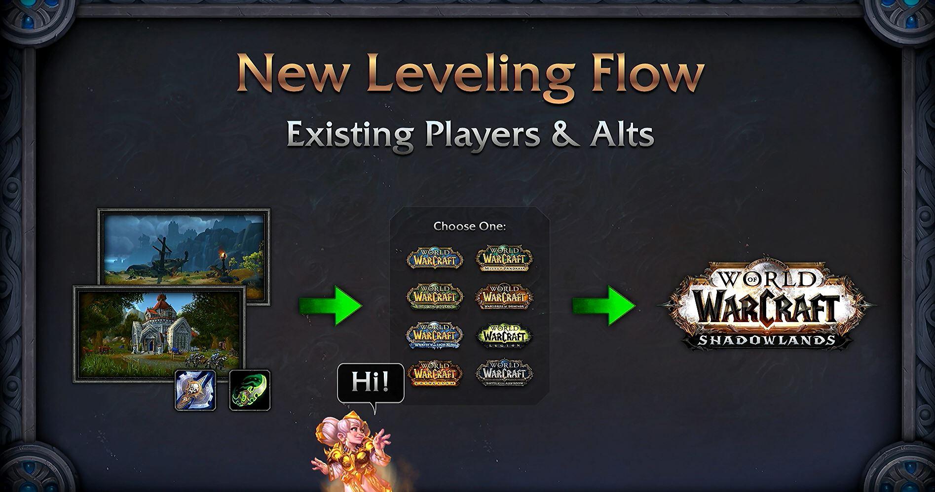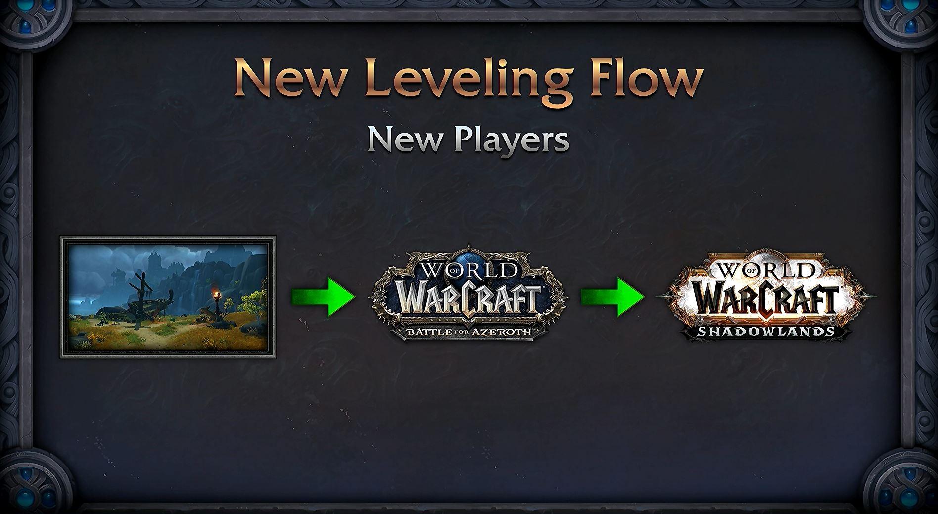 The leveling flow for new players includes the new leveling starting zone - Exile's Reach (1-10), then Battle for Azeroth and Shadowlands.