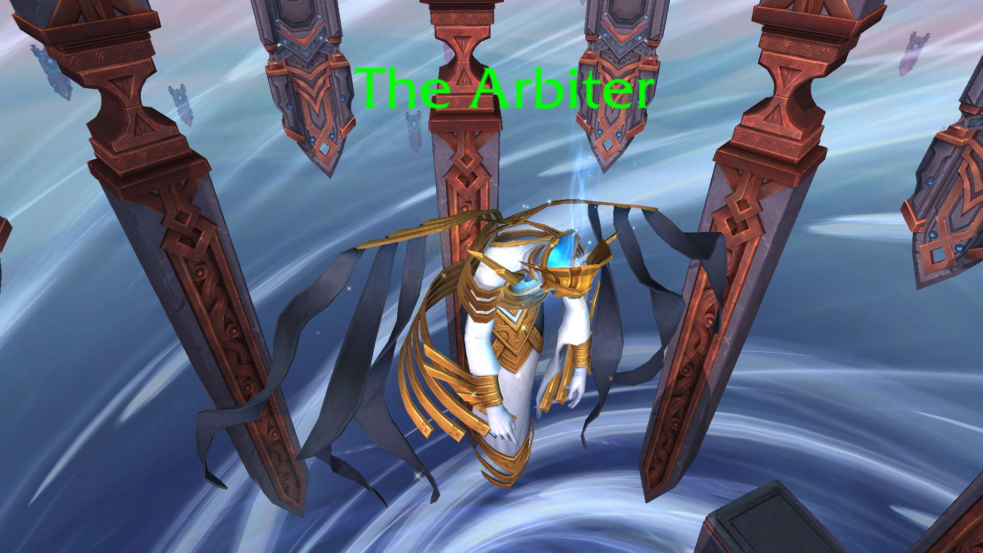 The Arbiter is an entity that judges mortal souls when they enter Shadowlands. All the good and bad things a person has done in life are equated before her, and the soul is then sent to one of the many afterlives. The Arbiter dwells atop Oribos, and she has gone dormant for some reason, so instead of directing souls to their afterlives, they are flowing directly to the Maw, home of the Jailer, causing an Anima drought in Shadowlands.