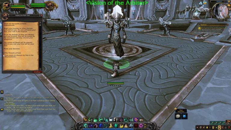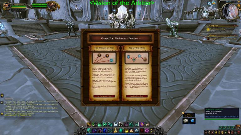 1. The Threads of Fate - Level up by doing world quests, side quests, bonus objectives, and dungeons. Main storyline quests will be skipped, and you will choose your covenant immediately. You will have access to all Shadowlands zones except the Maw. This choice is final and cannot be undone.