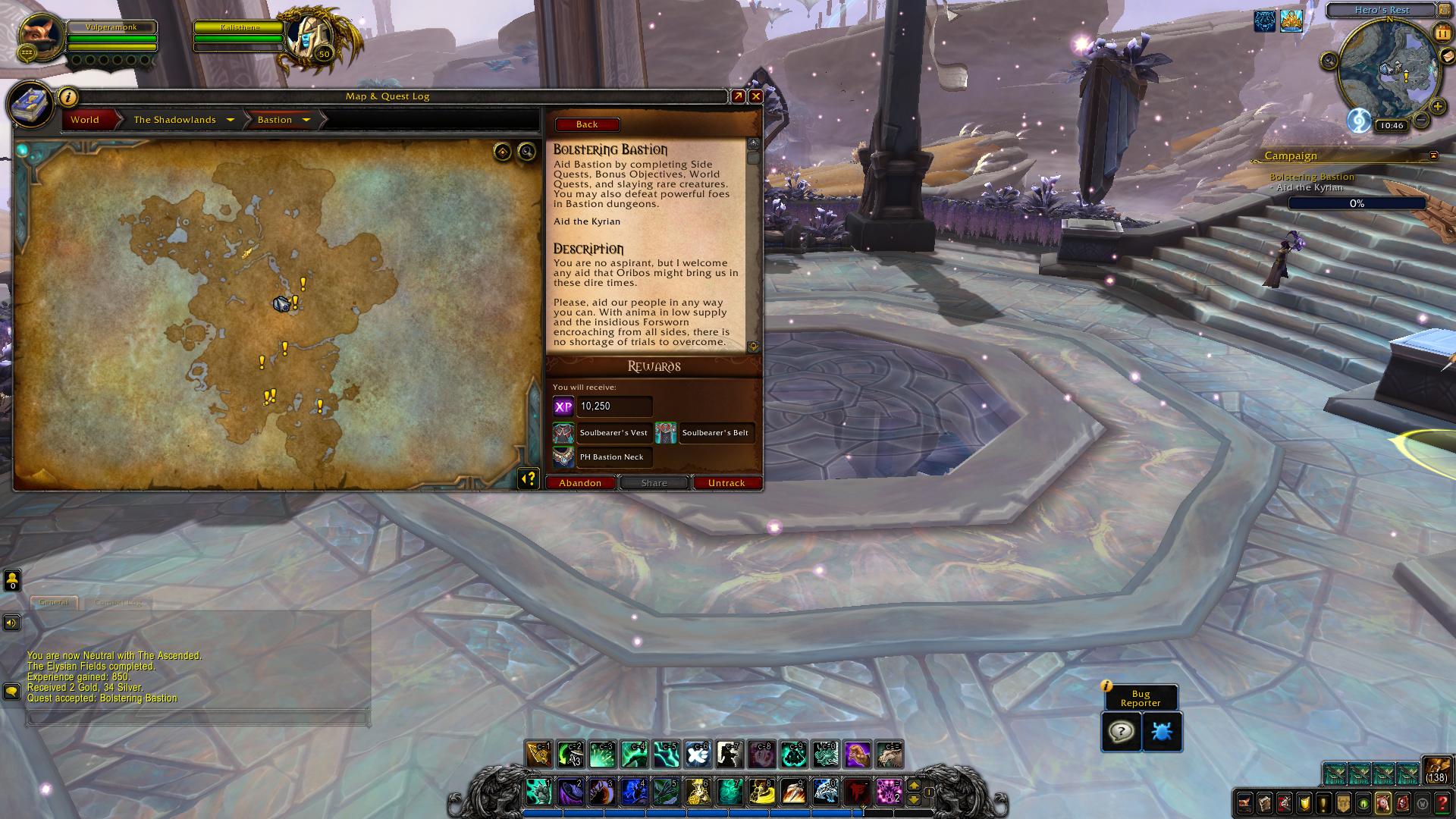 Here's an example of the quest from Bastion, and the main quest of the zone revolves around aiding the Kyrians by completing side quests, bonus objectives, world quests, and slaying rare creatures, including dungeon bosses.