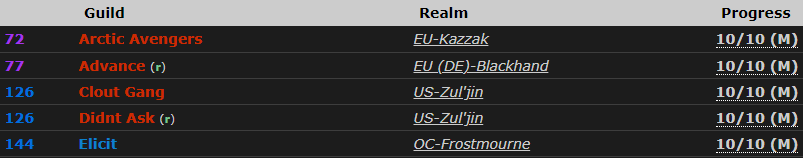 You can also check out a more detailed overview of the guild's history over on Raider.IO, but here are some of their more prominent raid triumphs: