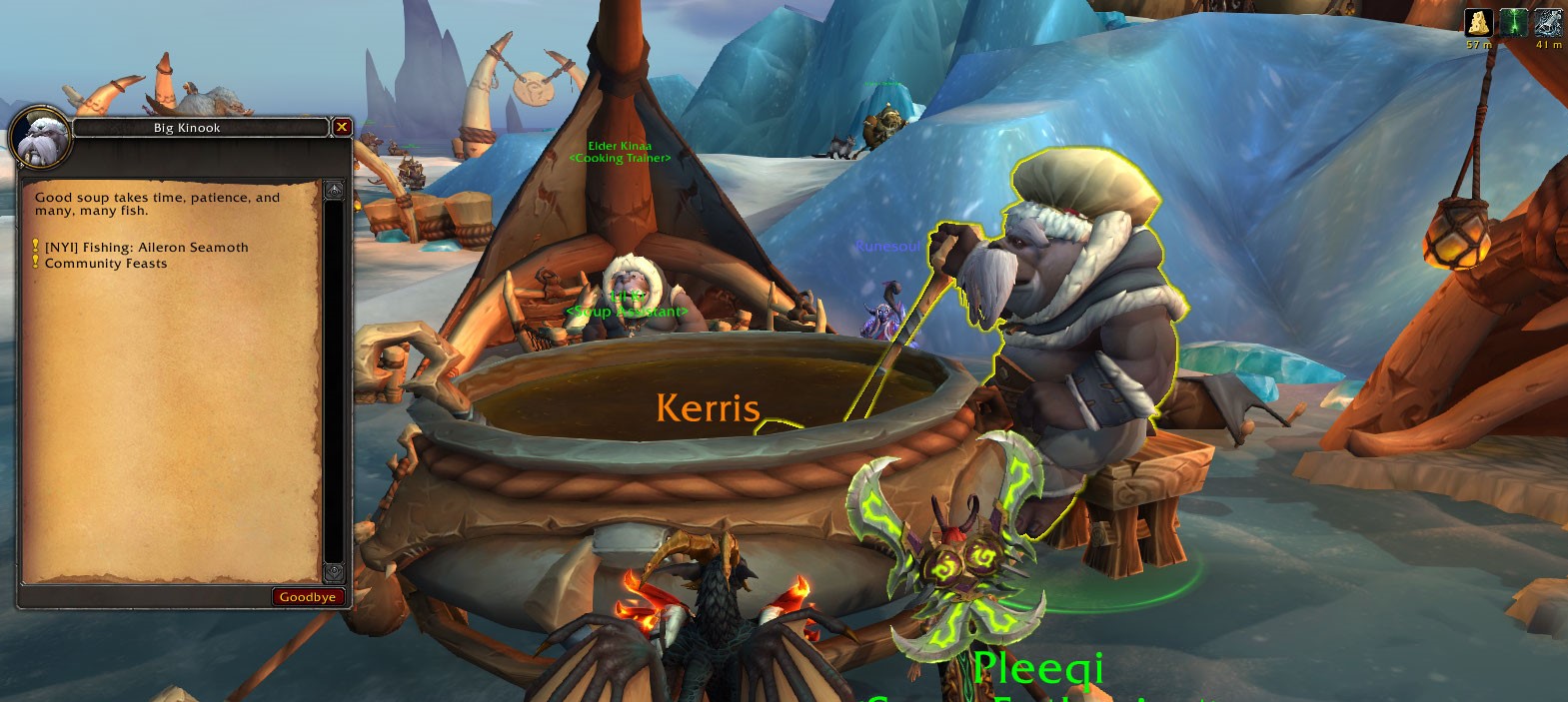 We had to fish up Aileron Seamoth Aileron Seamoths in the nearby pools and give them to Big Kinook to help with the soup. A fairly simple process.
