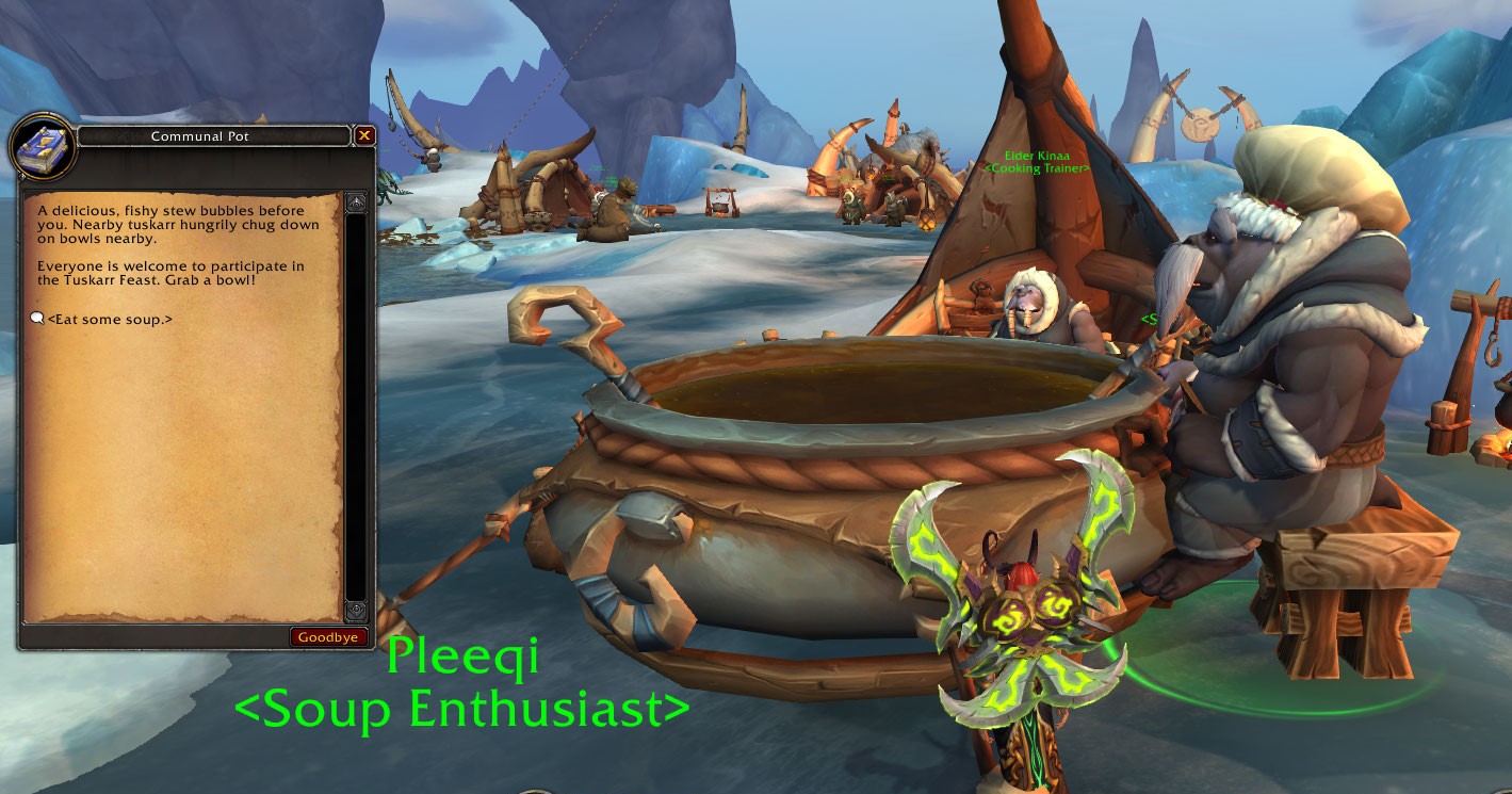 the event looks fun but sucks you will need a lot of people to get anything good also i wish they would being back the Noodle Carts from MoP or at least make them have expansion relevant food (even if just the most basic)