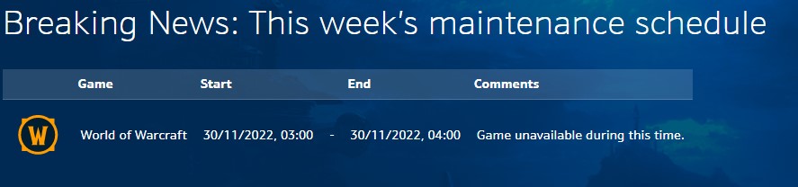 Blizzard will be taking servers down for a one-hour maintenance tomorrow in the US region.