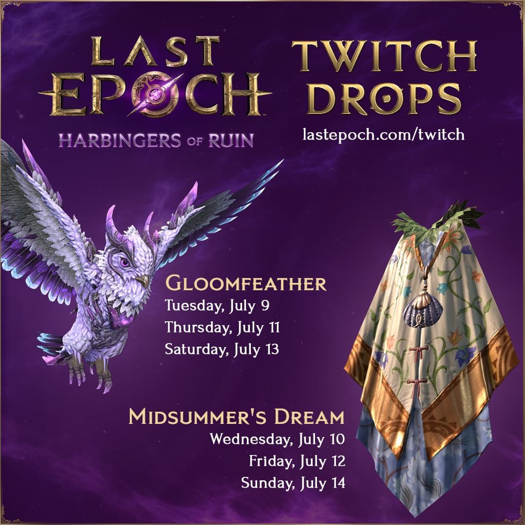 If you are streaming Last Epoch yourself, you can also enable those drops on your stream starting July 9th! The cosmetic items are available to everyone, so don't hesitate to watch some creators during that time to get your free goodies.