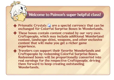 This event gives you Prismatic Crystals that you can spend on “surprise boxes” linked to player-created content. These can include extra Wonderland stages, cosmetics, and more.