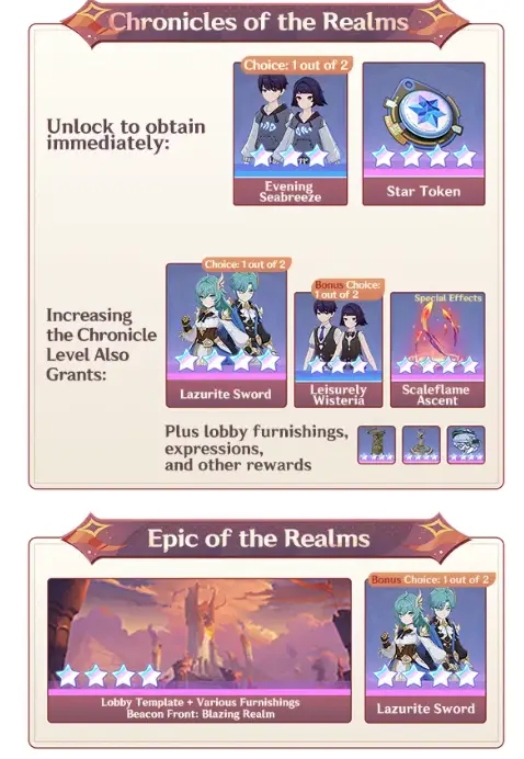There is also a weekly progression system through Scaled Edge Chronicles, where leveling up gives you additional rewards like materials, furnishings, and even free cosmetic sets.
