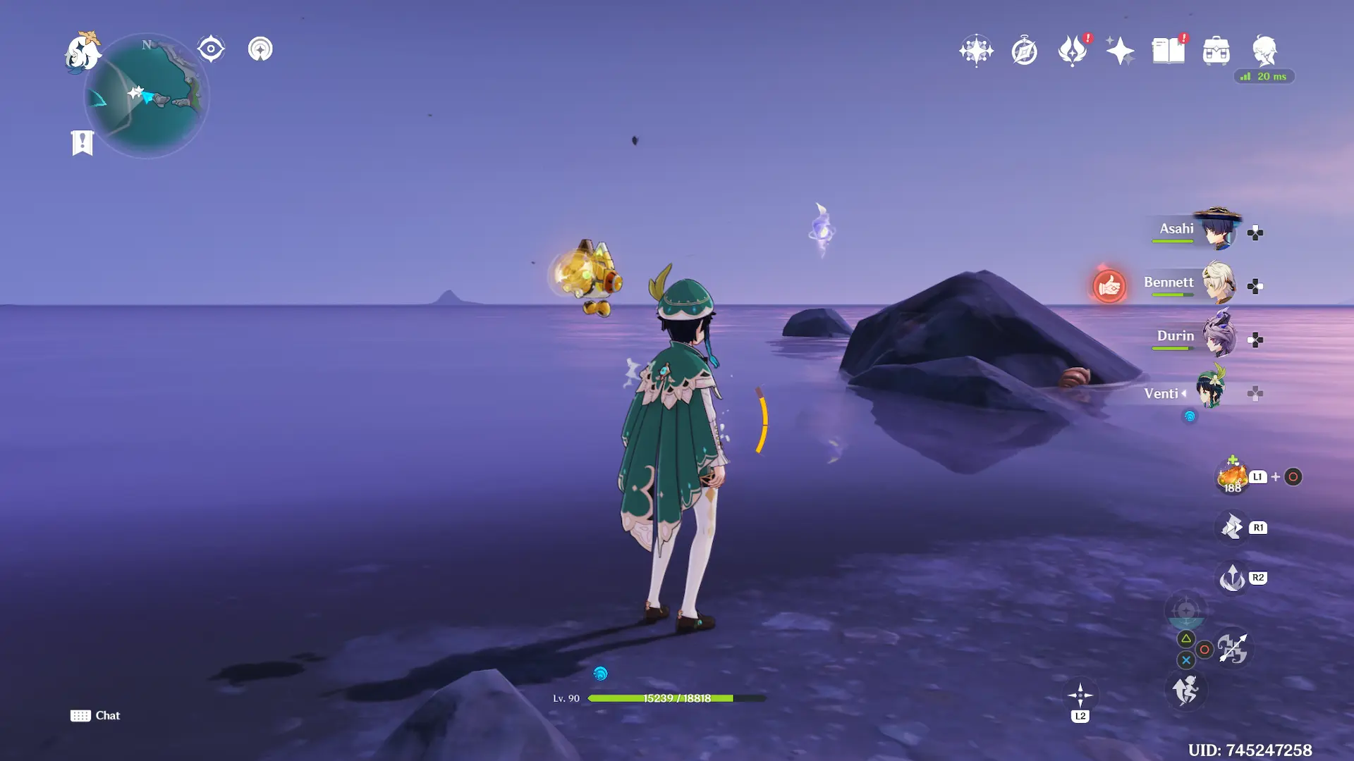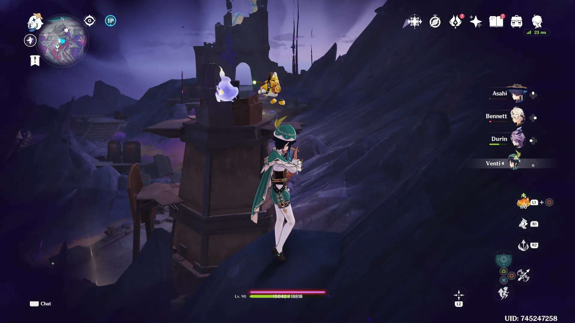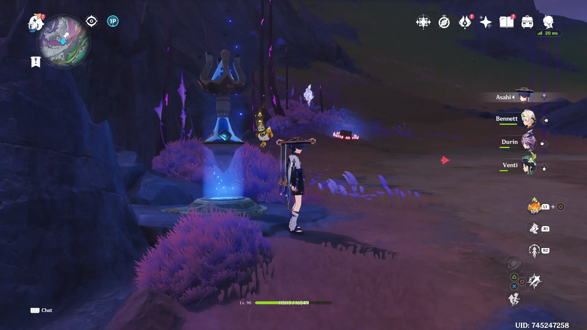 You will also have to be careful when exploring this specific zone. The whole area is corrupted by abyss, which means that you will take damage almost constantly. Similar to Dragonspine with cold, you have to activate nearby Kuuvahki flowers to get rid of the purple abyssal corruption bar.