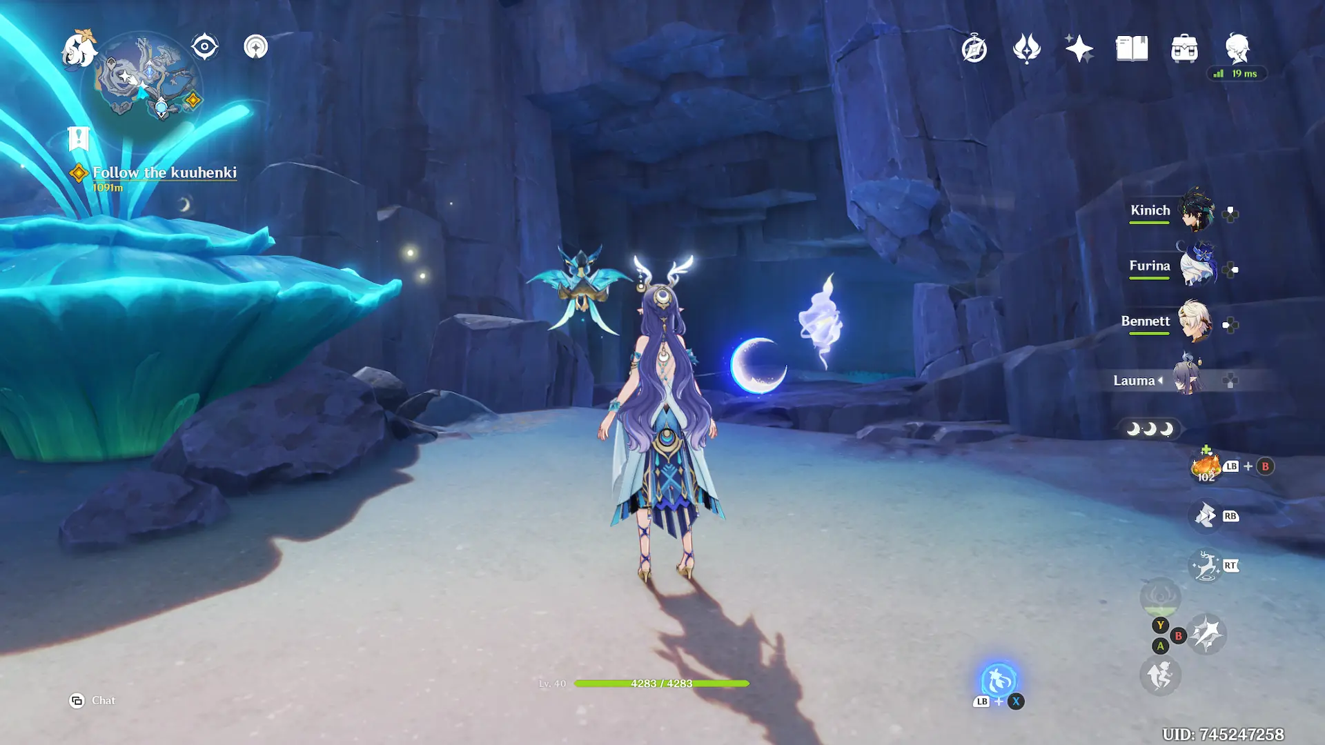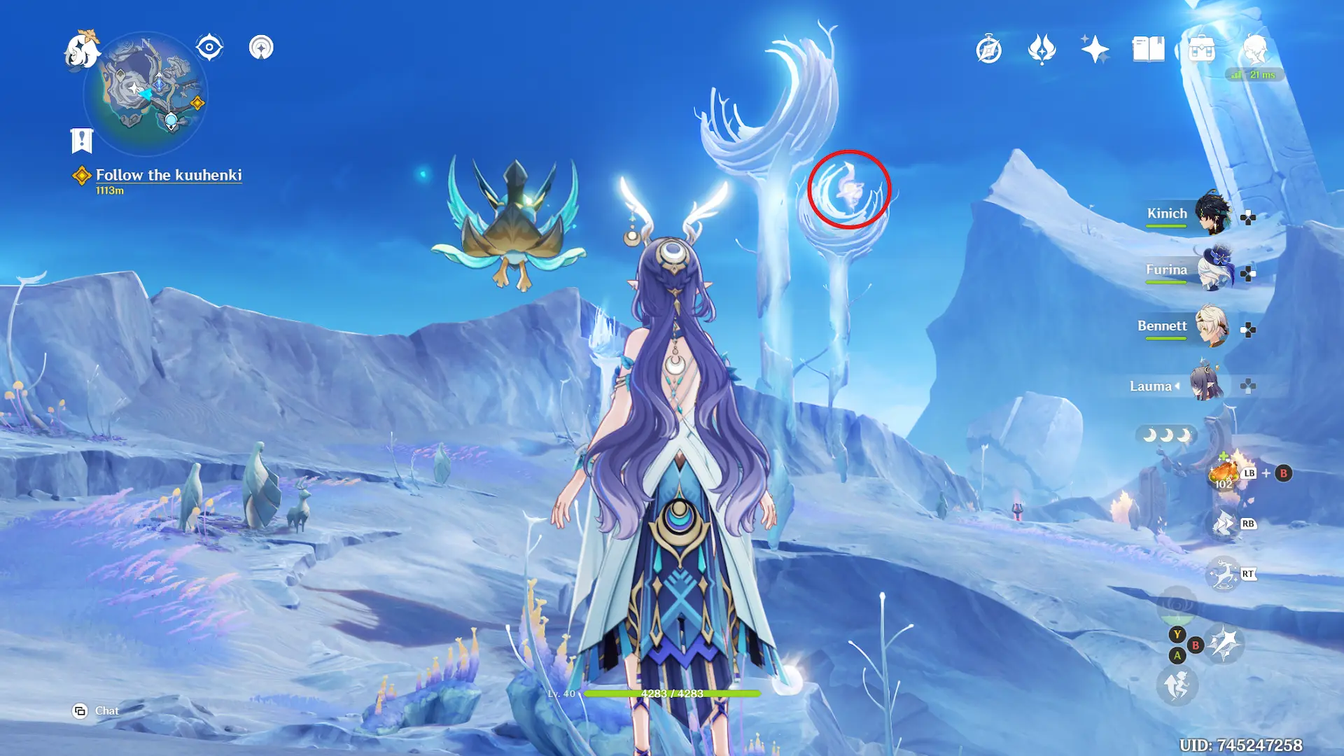 #3 Not really visible as it blends into the surrounding, but it is on top of one of the white pillars. Either use a character that can fly in the air, or use the red plants to turn into a Kuuhenki and float to the blue blue, to then yeet yourself towards the Lunoculus