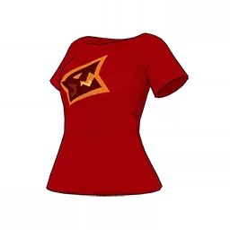 Dance Battle Shirt: Blazing Red is a 2-Star (Green) rarity item available in Genshin Impact's Miliastra Wonderland UGC gamemode, designed for the upper body slot. Dance Battle Shirt: Blazing Red can only be equipped by the female Manekina. This customisation option features primarily a red color scheme.
