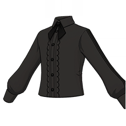 Elegant Dress Shirt: Ink Black is a 2-Star (Green) rarity item available in Genshin Impact's Miliastra Wonderland UGC gamemode, designed for the upper body slot. Elegant Dress Shirt: Ink Black can only be equipped by the male Manekin. This customisation option features primarily a black color scheme.