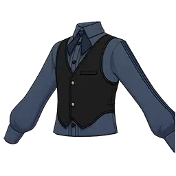 Formal Dress Shirt: Dark Blue is a 2-Star (Green) rarity item available in Genshin Impact's Miliastra Wonderland UGC gamemode, designed for the upper body slot. Formal Dress Shirt: Dark Blue can only be equipped by the male Manekin. This customisation option features primarily a black color scheme.