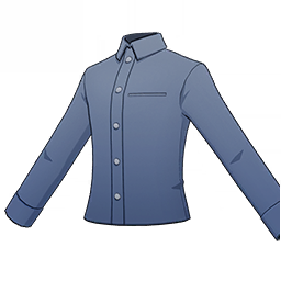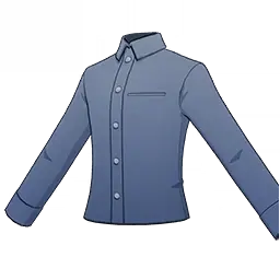 Simple Formal Shirt: Marine Blue is a 2-Star (Green) rarity item available in Genshin Impact's Miliastra Wonderland UGC gamemode, designed for the upper body slot. Simple Formal Shirt: Marine Blue can only be equipped by the male Manekin. This customisation option features primarily a blue color scheme.