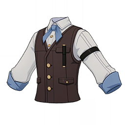 Dewdrop Shirt is a 3-Star (Blue) rarity item available in Genshin Impact's Miliastra Wonderland UGC gamemode, designed for the upper body slot. Dewdrop Shirt can only be equipped by the male Manekin. This customisation option features primarily a blue color scheme.