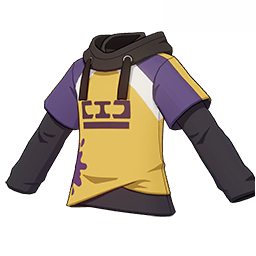 Rock 'n' Roll Hoodie is a 3-Star (Blue) rarity item available in Genshin Impact's Miliastra Wonderland UGC gamemode, designed for the upper body slot. Rock 'n' Roll Hoodie can only be equipped by the male Manekin. This variant mainly features colors such as Yellow and Purple.