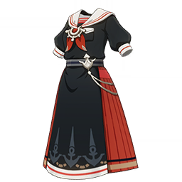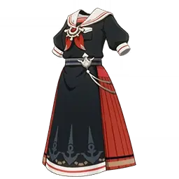 Wrathful Waters Sailor Outfit is a 3-Star (Blue) rarity item available in Genshin Impact's Miliastra Wonderland UGC gamemode, designed for the upper body slot. Wrathful Waters Sailor Outfit can only be equipped by the female Manekina. This variant mainly features colors such as Red and Black.