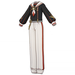 Wrathful Waters Sailor Outfit is a 3-Star (Blue) rarity item available in Genshin Impact's Miliastra Wonderland UGC gamemode, designed for the upper body slot. Wrathful Waters Sailor Outfit can only be equipped by the male Manekin. This variant mainly features colors such as Red and Black.