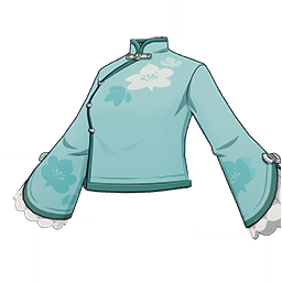 Quiet Orchid Simple Garment is a 3-Star (Blue) rarity item available in Genshin Impact's Miliastra Wonderland UGC gamemode, designed for the upper body slot. Quiet Orchid Simple Garment can only be equipped by the female Manekina. This customisation option features primarily a green color scheme.